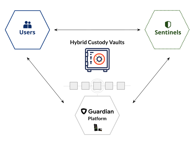 But when your private-key is lost, your chosen Sentinel can still unlock your Hybrid Custody™ Vault with just his private-key using Zero-Disclosure Proofs and Smart Contracts. However, if the Sentinel tries to unlock your Hybrid Custody™ Vault using his private-key without your consent, you can always sign a recovery transaction with just your private-key and override such a malicious unlock transaction.